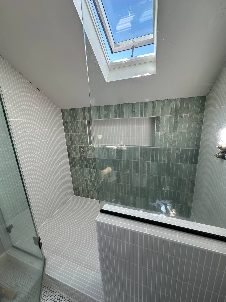 To keep the project seamless, we carefully removed the existing glass enclosure at the beginning and reinstalled it after the tile work was complete. The result is a shower that not only looks great, but is built for reliable performance—tight, protected, and ready for years of everyday use.